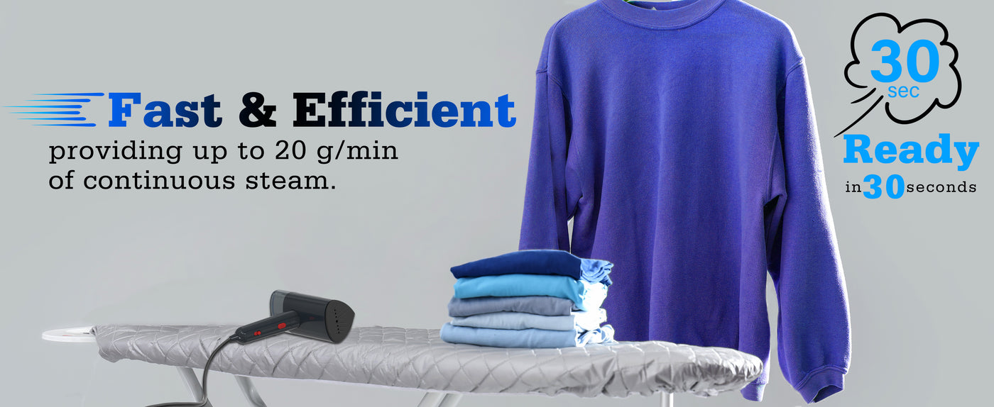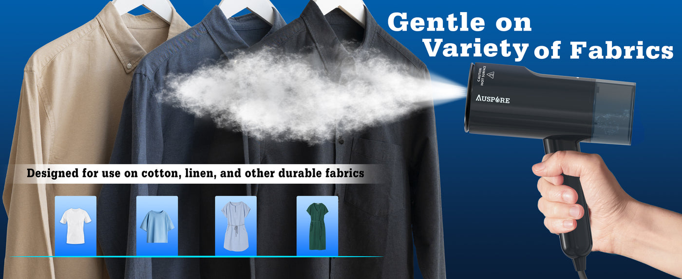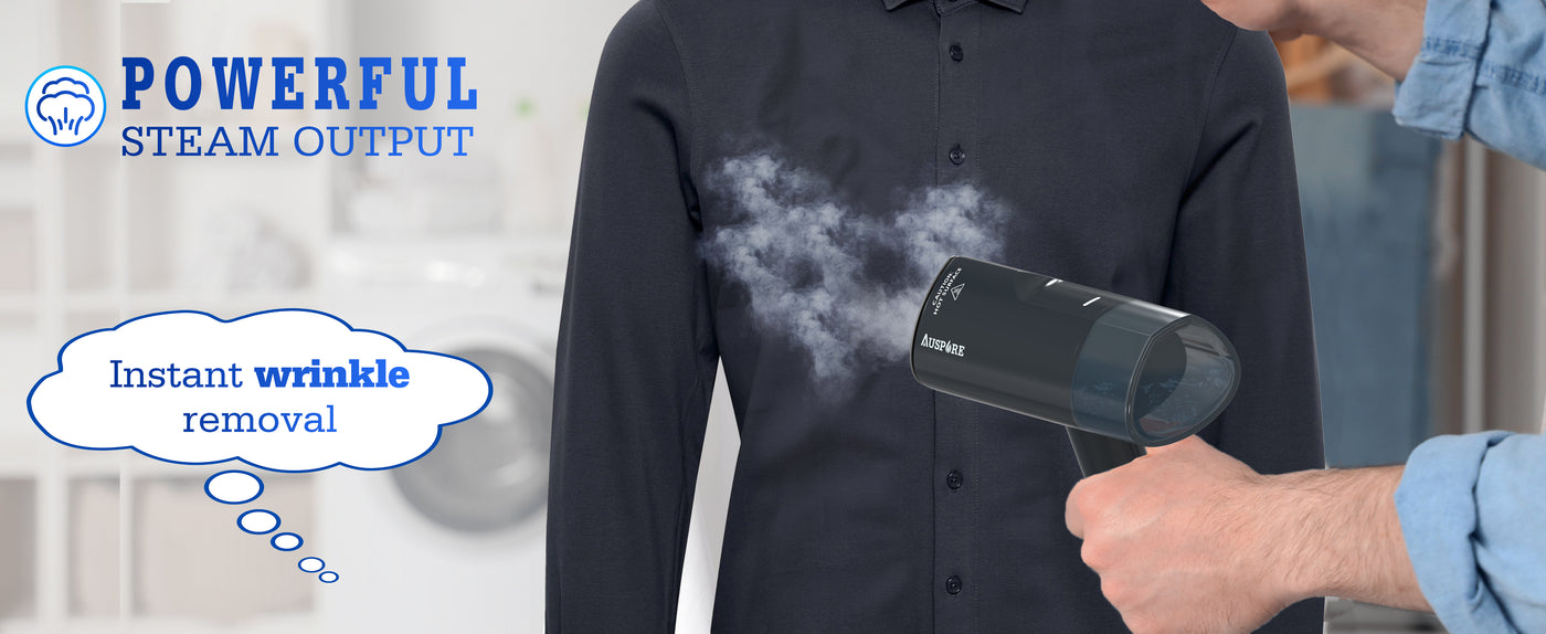 The AUSPURE Handheld Garment Steamer makes wrinkle removal quick and easy with continuous steam for up to 10 minutes at a maximum rate of 24 g/min. Its detachable 120ml water tank holds enough for a full outfit without refilling.