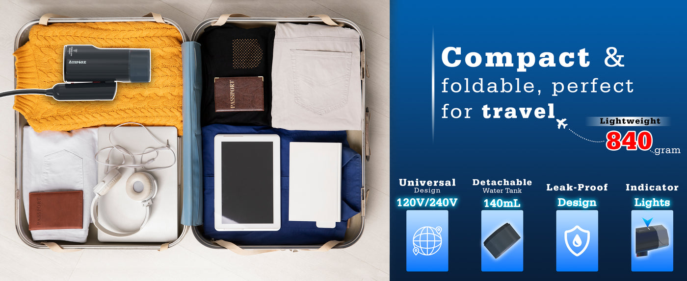 Lightweight, foldable, and portable, it’s perfect for home and travel, with a manual voltage switch (220V/240V) for worldwide compatibility.