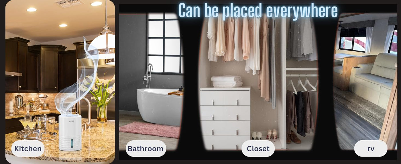 - [COMPACT & BEST CHOICE] Used Peltier technology with no compressor to make the dehumidifier lightweight. Perfect for up to 15 square meters. Unique size and contemporary design make it a perfect fit in normal size rooms, office spaces, kitchen, bedroom, bathroom, caravan, closet, garage.