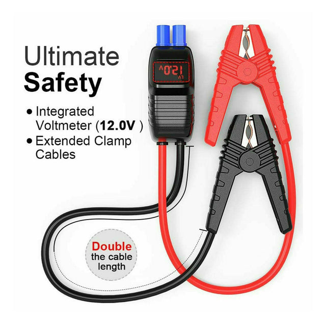 - [Smart Jumper Cable] contain digital displays for enhanced diagnostics and troubleshooting. The displays show battery capacity, input/output status, vehicle’s battery voltage, normal and abnormal status during jump start for ultra-safety.